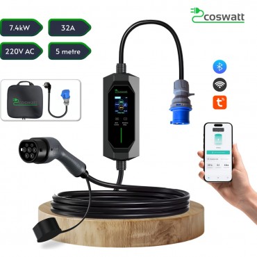 Coswatt Taşınabilir Ev Şarj Cihazı CS-P1-32A / 7.4kW / 5m / Türkçe / 220V AC / Tip-2 / 3X32A CEE / E..